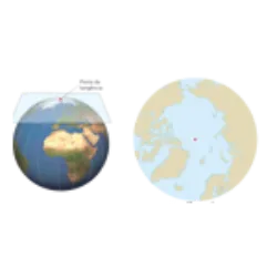 Proyección Azimutal (Plana o Cenital): El mapa se construye imaginándolo situado en un plano tangente o secante a un punto de la superficie terrestre.