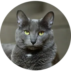 The Korat Cat is a breed of domestic cat originating from Thailand, mentioned in ancient Thai manuscripts such as the "Tamra Maew" (Book of Cat Poems), the Korat is one of the oldest cat breeds. It is traditionally associated with good luck, prosperity and fertility. It was introduced to the West in the late 1950s and early 1960s, mainly in the United States and Europe. Known for his distinctive appearance and captivating personality. It has a short, smooth and shiny coat, with a characteristic bluish-silver color. Each strand of hair tends to be lighter at the root and darker at the tip, creating a sparkling effect. They have large, rounded, expressive eyes that range from bright green to amber. Generally a healthy breed, but some may be prone to genetic diseases such as gangliosidosis (an inherited neurological disorder).