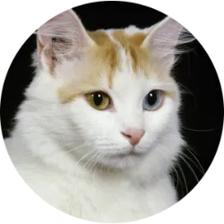 Turkish Van cats have a distinctive appearance, with a robust, muscular body. They have soft, silky fur, generally white, with colorful spots on the head and base of the tail. Their tails are long and furry, often with a ring pattern at the tip. A striking feature is the color of their eyes. They have large, expressive almond-shaped eyes that can be different colors, ranging from blue to amber. Some cats of this breed may even have different colored eyes, a condition called heterochromia. They are known for their unique and outgoing personality. An unusual feature of these cats is their affinity for water. There is no pathological history related to this breed, but it requires a vaccination program and regular parasite control.