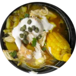 El ajiaco es una reconfortante, espesa y abundante sopa de pollo colombiana preparada con verduras, especias, pollo y hierbas, y servida con alcaparras y crema. Esta sopa es una especialidad popular, con diferentes versiones en diversas regiones de Colombia. El ajiaco santafereño, elaborado con pollo, tres tipos de papa, maíz y hierba guascas, es una opción reconfortante y deliciosa, especialmente en la capital, Bogotá. La receta tradicional se cocina en ollas de barro, pero también sirve una olla grande normal. Cada región tiene sus variaciones, pero la esencia permanece, ofreciendo una comida perfecta para los días de frío.
