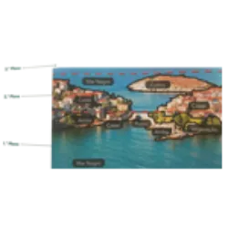 1st Plane: Closer to the observer, providing a more detailed view. It includes natural elements such as the Black Sea, vegetation and cliffs, along with human elements such as houses and a bridge.