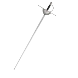 La espada en esgrima es más adecuada para esgrimistas altos, ya que puede alcanzar todo el cuerpo del oponente. Su peso máximo es de 770 g, la longitud máxima de la hoja es de 90 cm y la longitud total máxima es de 120 cm. Debe manejarse verticalmente para asegurar golpes fuertes y precisos. Es un arma más rígida que produce golpes poderosos, especialmente en la máscara del oponente. Es importante no agacharse demasiado al jugar con la espada para evitar exponer la rodilla.