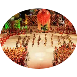 The Choreography item refers to the choreographed and coordinated presentations of the members of the bois-bumbás, both Boi Garantido and Boi Caprichoso. These choreographies are created with precise and synchronized movements, which complement the narrative of the performances and highlight the aesthetic beauty and artistic expression of the folkloric groups. The choreographies are carefully rehearsed and performed by dancers and players, who incorporate traditional dance steps from the Amazon region, as well as specific movements created for each performance. They contribute to the vibrant and exciting atmosphere of the festival, engaging the public and adding dynamism to the oxen performances. The quality and originality of the choreographies are considered by the judges when evaluating the performance of each ox during the event.