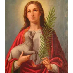 Saint Agnes was one of the first Christians to be martyred for her faith, at the age of 12 or 13, refusing to give up her beliefs despite threats and torture. Her story of faith and resistance became an example of devotion, and she came to be recognized as a saint by the Catholic Church. Agnes is often depicted with a lamb, a symbol of her purity, and her name is related to the word "agnus", which means "lamb" in Latin.