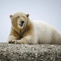 El oso polar, que se encuentra en el Círculo Polar Ártico y sus alrededores, es el carnívoro terrestre más grande y está adaptado al entorno helado. Sin embargo, debido al calentamiento global, su hábitat se está perdiendo rápidamente a medida que el derretimiento del hielo en el Ártico perjudica su alimentación y reproducción. La especie se considera actualmente vulnerable y está en la Lista Roja de la UICN.
