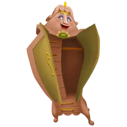 Madame Armário, transformada en un armario encantado, es uno de los personajes más memorables de La Bella y la Bestia. Como institutriz del castillo, es elegante, refinada y tiene una personalidad fuerte y afectuosa, aportando un aura de dignidad al entorno. Su transformación la convierte en una figura excéntrica, pero con un encanto innegable.