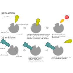 Enzyme inhibition is a fundamental process in the regulation of metabolic activities, allowing the organism to control biochemical reactions in a precise manner. There are two main types of enzyme inhibition: competitive and non-competitive. In competitive inhibition, the inhibitor binds to the active site of the enzyme, competing with the substrate and decreasing the reaction rate. In non-competitive inhibition, the inhibitor binds to another site of the enzyme, altering its structure and decreasing catalytic efficiency, even if the substrate is present.